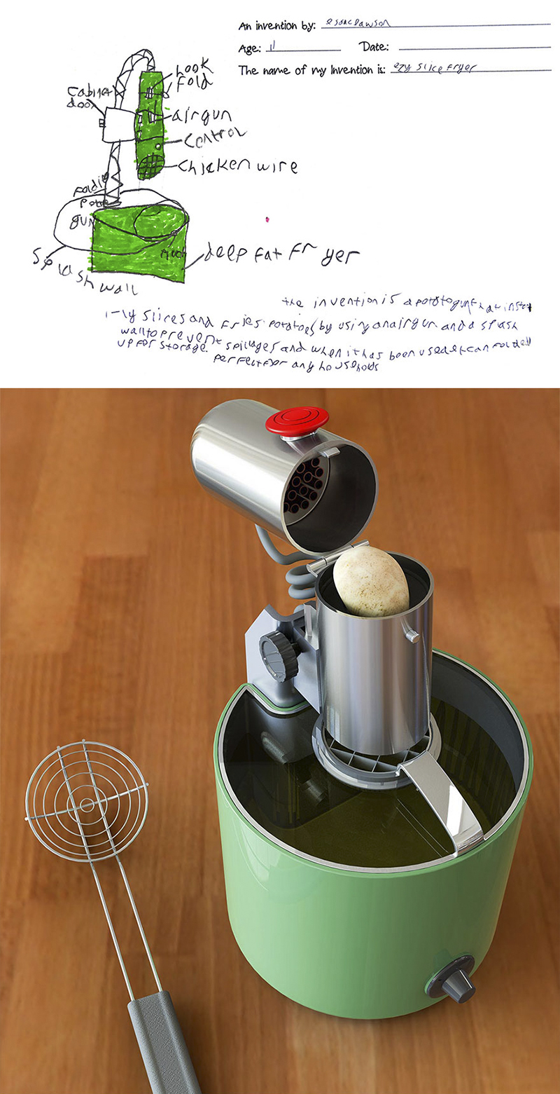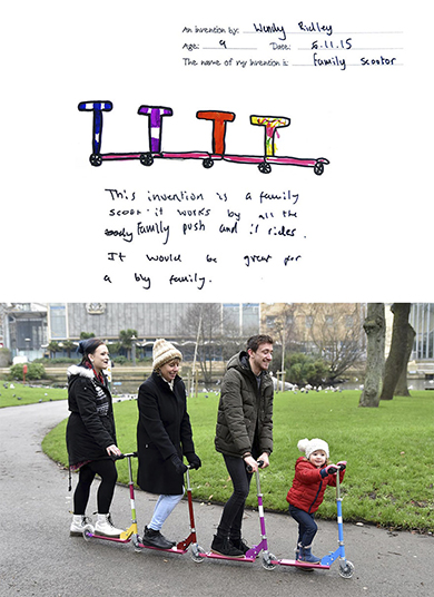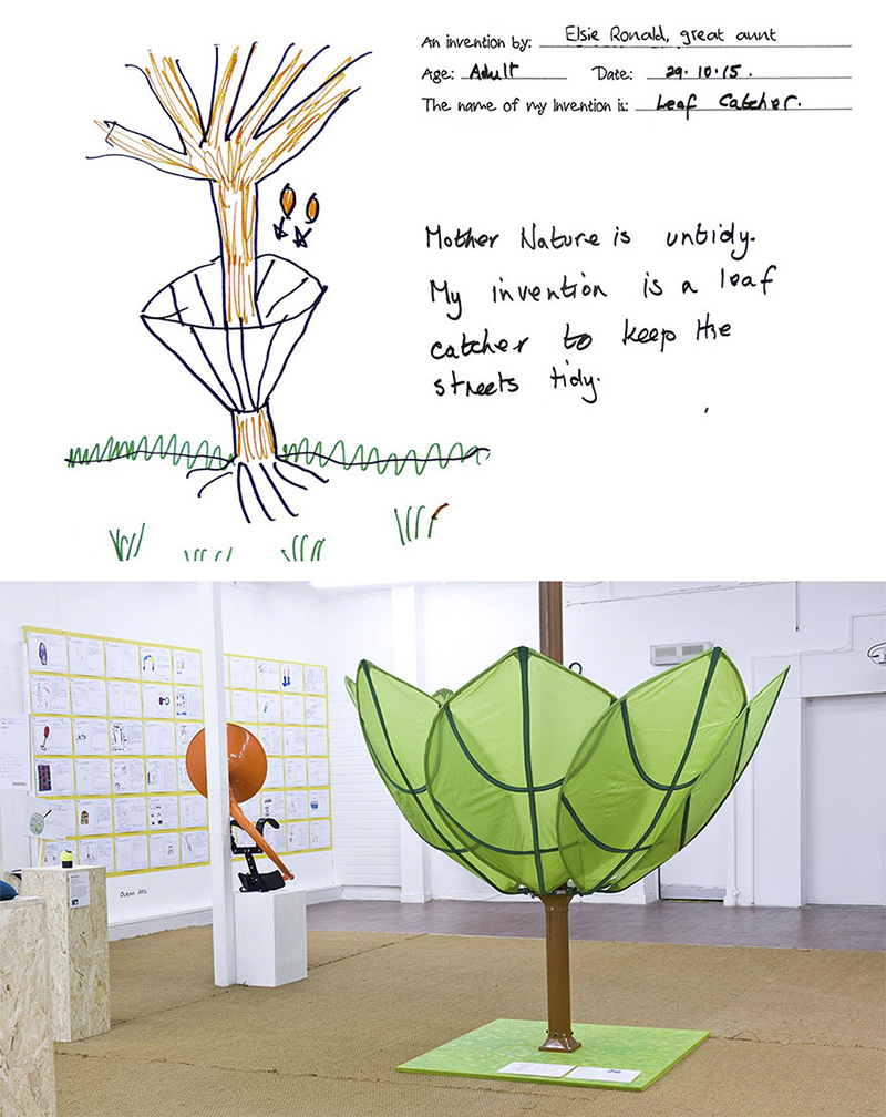 British designer and inventor Dominic Wilcox has launched a project, “Inventors!” to turn 60 invention drawings of children from Sunderland and South Tyneside, UK into real-life objects.
