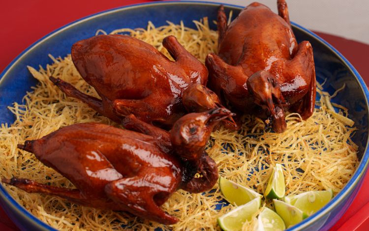 Another highlight is the traditional Stewed baby duck with taro, lemon and aged tangerine peel. The tender duck is first pan-seared, then slowly simmered in a fragrant reduction of aged tangerine peel, soy sauce, lemon and rock sugar. Meanwhile, the steamed taro absorbs the rich savoury-sweet sauce, creating a perfect complement.
