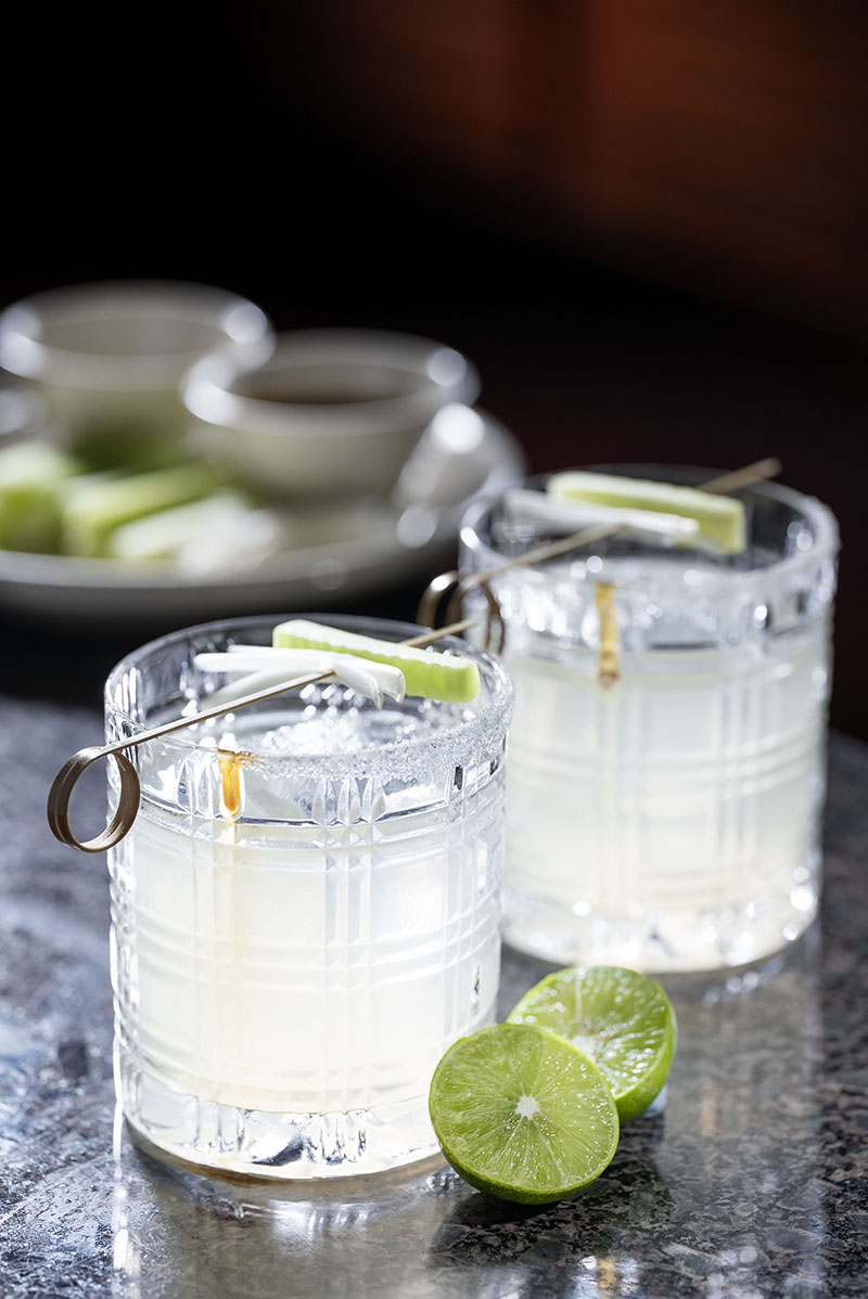 靈感來自傳統北京烤填鴨。以鴨油浸泡琴酒散發着迷人香氣,青瓜與青檸的清新酸度平衡油潤口感,杯口一半裹以白砂糖、一半沾上黃豆醬,讓每一口都層次分明;調酒師更參考享用烤填鴨的三種吃法,為這杯雞尾酒設計了專屬的三個品嚐步驟,帶給您層層遞進的豐富風味。